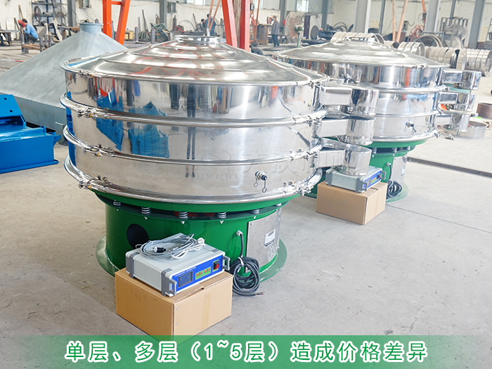 氧化鎂超聲波旋振篩有1~4層設計,可同時進行2~5個等級的分選或過濾,層數越多價格越貴,不同的層數代表著不同的篩分目的,多層篩網可以完成分級除雜等篩分效果。不同層數價格在1000元以上。